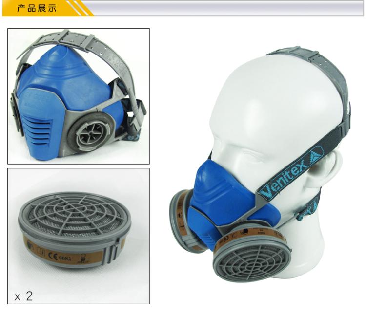 高级人造橡胶半面罩,弹性头颈带设计,带有可调节松紧头箍,可配合单独出售的M6000系列高容量滤盒使用